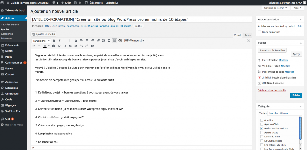 [ATELIER-FORMATION] « Créer un site ou blog WordPress pro en moins de 10 étapes »